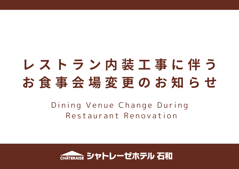 レストラン内装工事に伴うお食事会場変更のお知らせ【3/1(日)~3/15(日)】