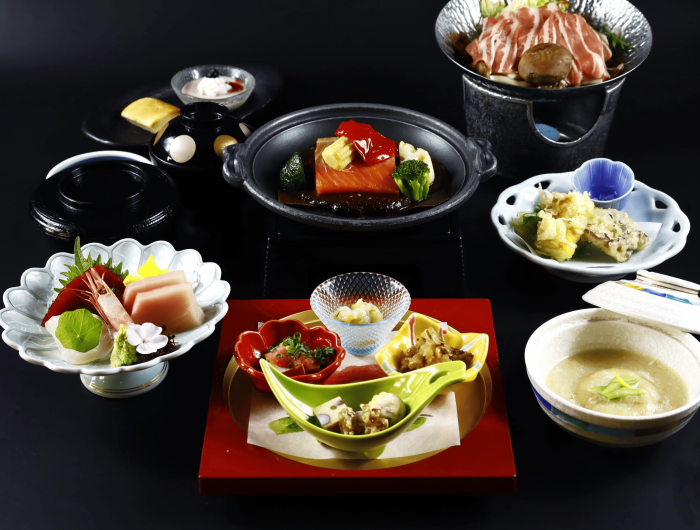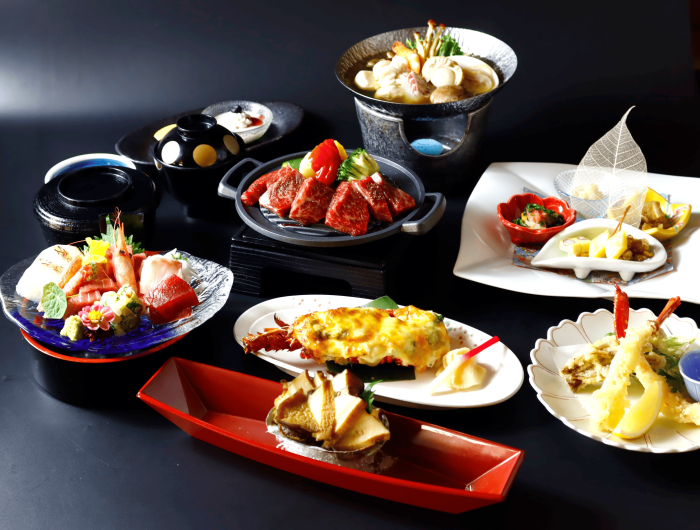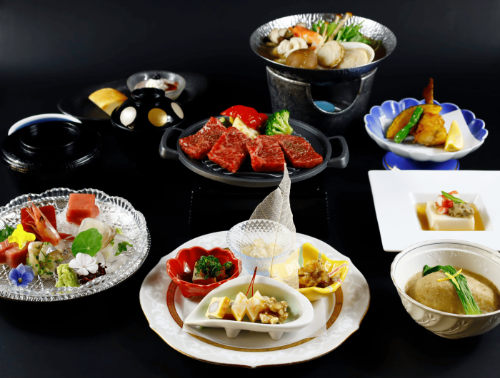 清水港直送の天然本鮪と旬の食材をふんだんに使用したコースです。メインには、陶板で焼く黒毛和牛のステーキをご堪能頂ける当ホテルおすすめのコースです。