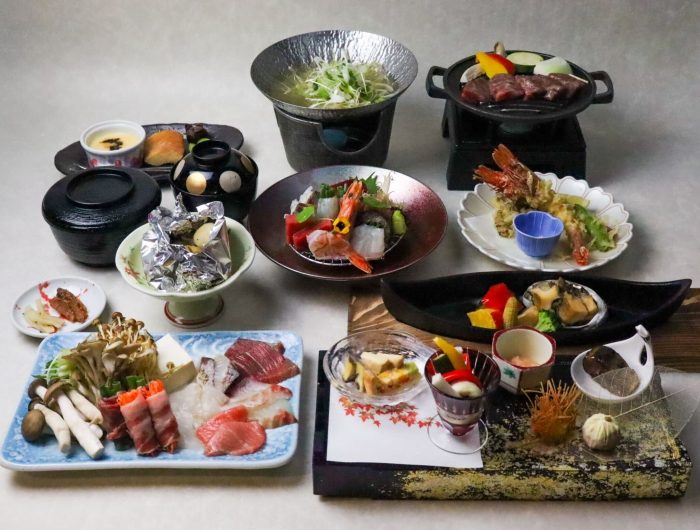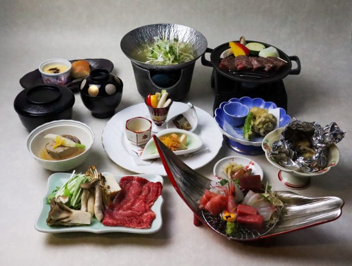 清水港直送の天然本鮪と旬の食材をふんだんに使用したコース。メインには、陶板で焼く黒毛和牛のステーキをご堪能頂ける当ホテルおすすめのコースです。
