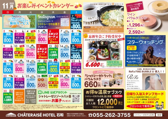 シャトレーゼホテル石和では、11月も楽しいイベントが盛りだくさん!