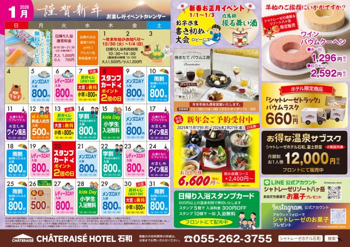 シャトレーゼホテル石和では、1月も楽しいイベントが盛りだくさん!