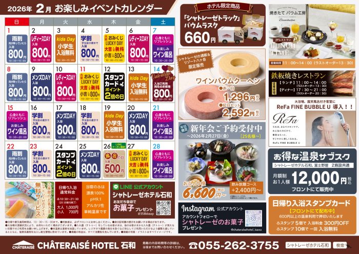 シャトレーゼホテル石和では、2月も楽しいイベントが盛りだくさん!